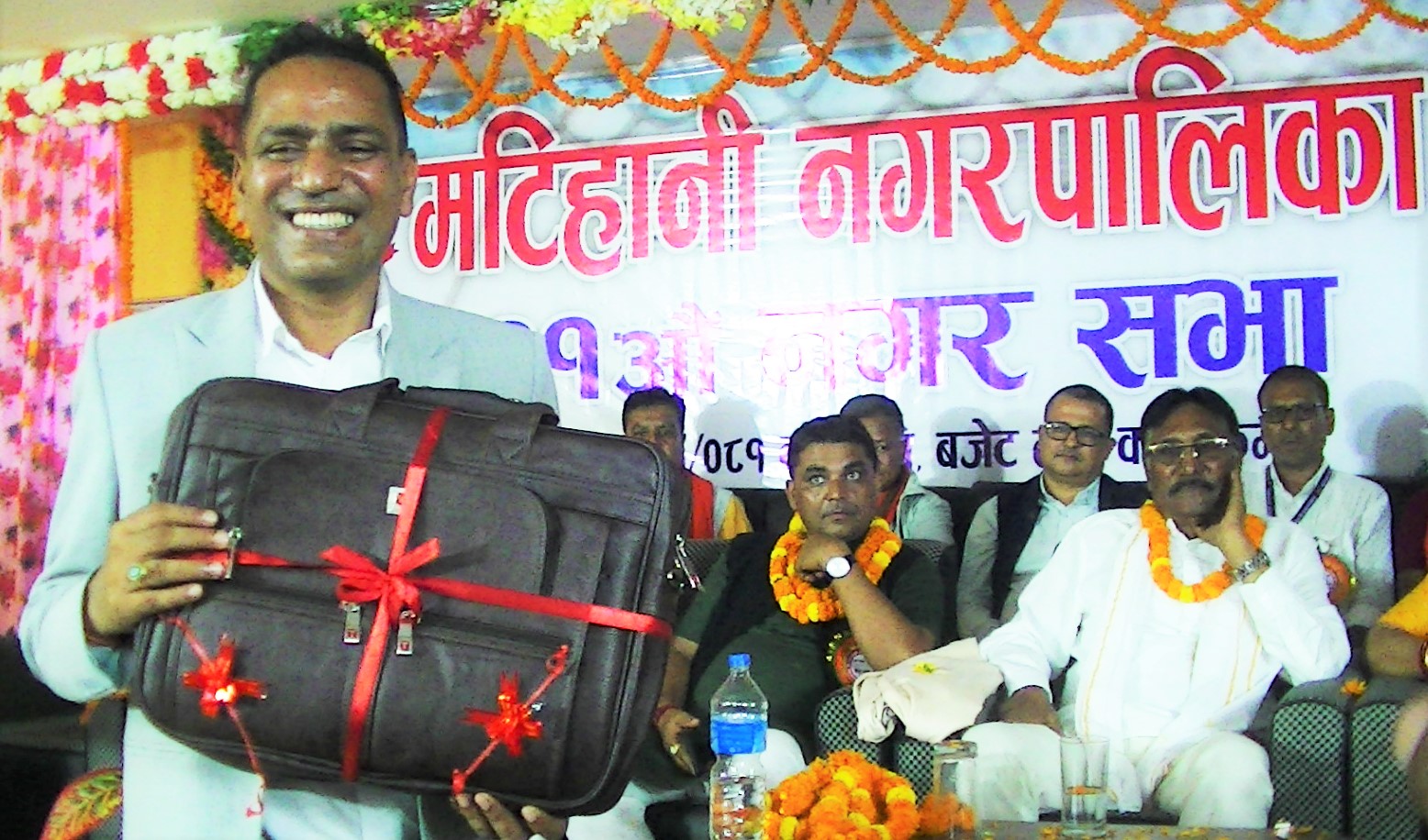 समृद्ध मटिहानी ,,सुखी नगरबासी बनाउने अबधारणा सहीत मेयर मण्डलले ४० करोड ३९ लाख ८ हजार एक सय रुपैयाकोे बजेट प्रस्तुत गरेका हुन् ।