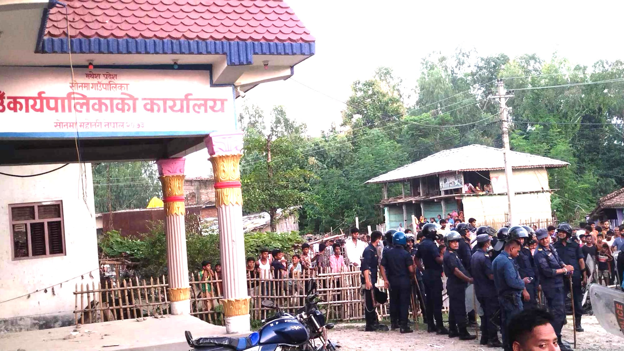 आक्रोसित विद्यार्थीहरुको समुहले गाउँपालिकामा ढुंगा मुढा प्रहार गर्दा गाउँपालिकाको झयालको सिसा फुटेका छन भने ,गाउँपालिका अध्यक्ष यादव चढने गाडी मधेश प्रदेश ०२,००१ झ ०२२९ नम्बरको गाडीको सिसा,त्यस्तै ज ११प३९६६ नम्बरको मोटरसाइकल र नम्बर न खुलेको एउटा अर्को मोटरसाइकलमा अगजनी गर्दा दुवै मोटरसाइकल जलेर पुणर्रुपले क्षति भएको छ । विद्यार्थीहरुको अवस्थालाइ नियन्त्रणमा लिन सोनमा गाउँपालिकामा रहेको शस्सत्र प्रहरी ,जनपत प्रहरी, गाौशाला न पा मा रहेको राम नगर शस्सत्र प्रहरी र गौशला इलाका प्रहरी कार्यालयका प्रहरीहरुलाइ खटाइएको थियो । प्रहरीले अबस्था नियन्त्रणमा लिन एक दर्जन भन्दा बढी राउन्ड अश्रुग्यास प्रहार गर्नुको साथै त्यहाँ उपस्थित दर्जनौ विद्यार्थी र स्थानियहरुलाई कुटपिट समेत गरेका छन ।