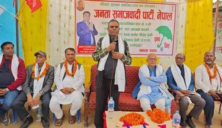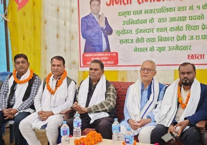 धनुषाधाम नगरपालिका वार्ड नं १ का वार्ड अध्यक्ष का लागि जसपा, नेपालका उम्मेदवार अजय यादव मोहनलाई जिताउनका लागि आयोजित चुनावी कोण सभालाई संघीय सांसद दिपक कार्की, प्रदेश सांसद रामअशिष यादव, प्रदेश अध्यक्ष बालकिसोर प्रसाद यादव सहितका वक्ताहरूले सम्बोधन गरेका छन।