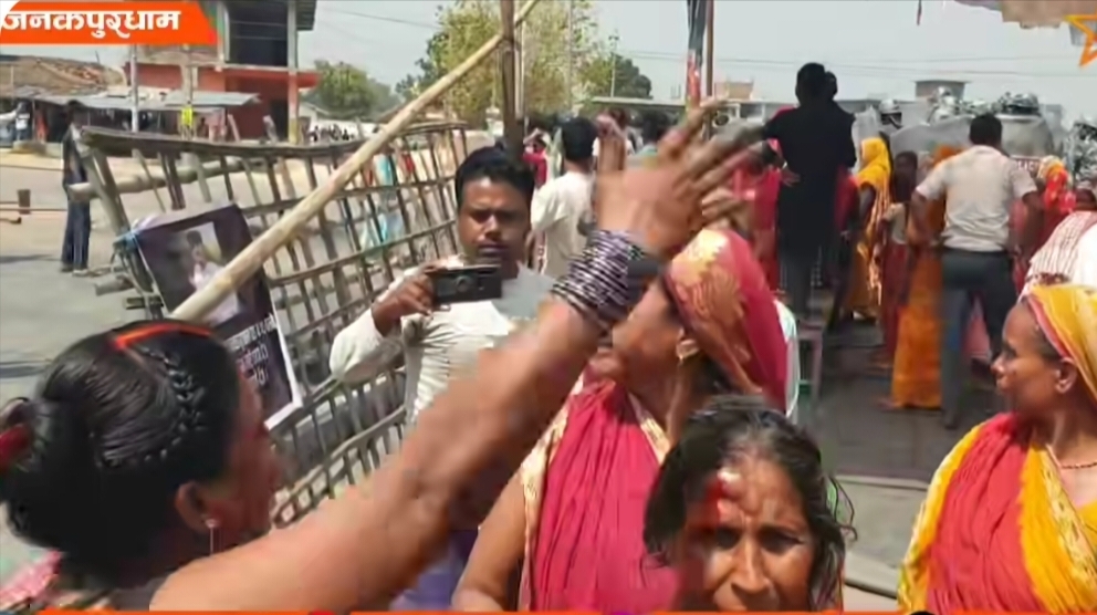 जनकपुरधाम बिन्धिकाे अंशु यादबकाे हत्याराहरु पक्राउ नगरेकाेले स्थानियहरु प्रशासन बिरुद्ध प्रदर्शन गर्दै।
