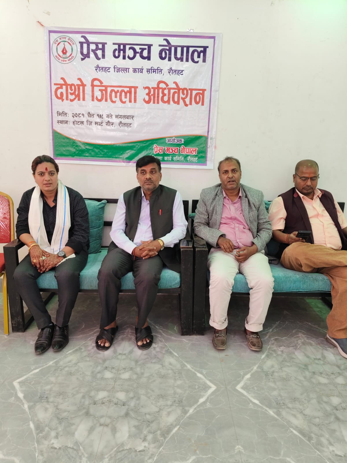 प्रेस मञ्च नेपालका राैतहट जिल्ला अध्यक्ष किशाेरी यादवकाे अध्यक्षता तथा प्रेस मञ्च नेपालका कार्यवाहक अध्यक्ष मनाेज यादवकाे प्रमुख आतिथ्य विशिष्ट अतिथि जसपा नेपालका केन्द्रीय सदस्य एवंम मधेश प्रदेशका पुर्व कृषि तथा सहकारी राज्य मन्त्री याेगेन्द्र यादव प्रमुख आतिथ्य , केन्द्रीय सदस्य तथा प्रदेश सभा सदस्य शाेभा देवी साह, प्रेस मञ्च नेपालका केन्द्रीय सदस्य रबिन्द्र साह , प्रेस मञ्च नेपालका मधेश प्रदेशका महासचिव बन्दना झा ,प्रेस मञ्च नेपाल महाेतरी जिल्ला सदस्य शैलेन्द्र यादव लगायत अधिवेशनमा जिल्लाका विभिन्न स्थानबाट आएका पत्रकारहरू, सञ्चारकर्मीहरू तथा अतिथिहरूको उल्लेखनीय उपस्थिति रहेको थियो।