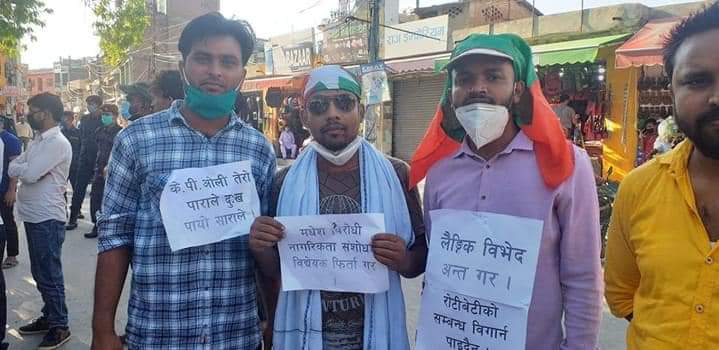 सतारुढ नेकपाले गरेको नागरिकता बिधियेक सम्बन्धी निर्णय प्रती बिरोध जनाउदै आज देशकाे विभिन्न स्थानमा जनता समाजवादी पार्टीले सतारुढ नेकपाले गरेकाे निर्णयकाे विराेधगरी प्रदर्शन गरेको छ। जनकपुरकाे जनक चौकमा जम्मा भएका मधेशी नेता तथा अधिकारकर्मिहरुले प्रदर्शन गरेका छन ।