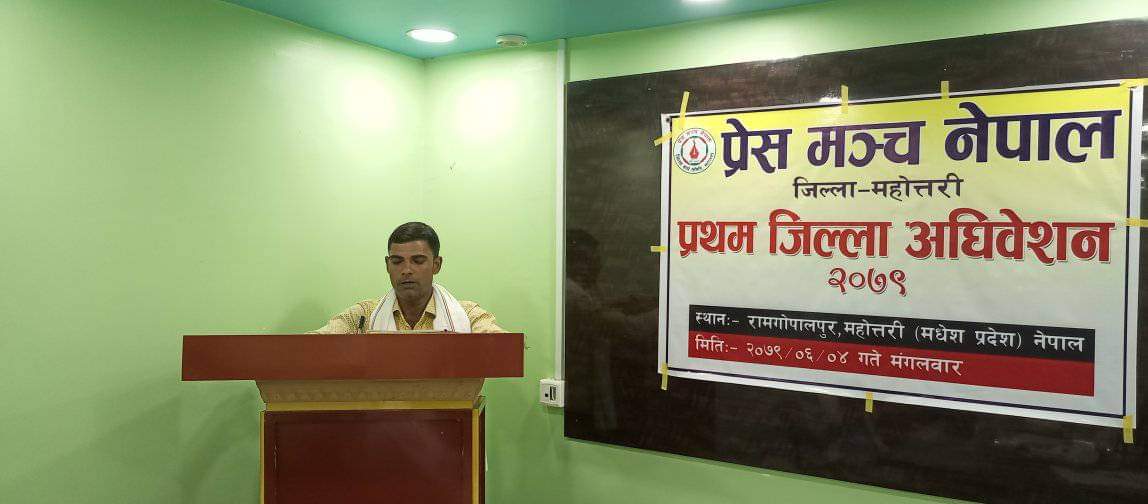 जनकपुरधाम (झाेसं) – प्रेस मञ्च नेपाल महाेत्तरीले प्रथम जिल्ला अधिवेशन सम्पन्न गरेकाे छ।