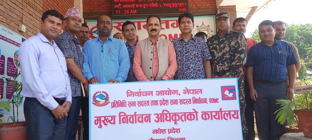 गाैर । जिल्ला सदर मुकाम गाैरमा आईतबार एक कार्यक्रम बीच मुख्य निर्वाचन अधिकृतकाे कार्यालय स्थापना भएको छ । राैतहट जिल्ला अदालतका जिल्ला न्यायाधीश तथा राैतहट जिल्लाका मुख्य निर्वाचन अधिकृत मातृका प्रसाद मरासिनीले जनताले चाहेको जन प्रतिनिधि छान्ने सवालमा हामी निश्पक्ष धाधली रहित रुपले कार्य गर्ने कुरामा लागि परेका छाैं सो अवसरमा आयोजित कार्यक्रम लाई सम्बोधन गर्देे बोल्नु भयो । दलका प्रतिनिधि आचारसंहिता पालना गर्न तयार रहेको प्रतिवद्वता आएकोछ यसलाई सुखद रुपमा लिएको बताउनु भयाे। सुरक्षाको सवालमा प्रमुख जिल्ला अधिकारीबाट सुरक्षामा कमि कमजोरी हुदैन यसले निश्चित रुपमा निश्पक्ष चुनाव हुनछ भने कुरामा विश्वास व्यक्त गर्नु भयो । जुलुस भेला कोण सभा २४ घन्टा पहिले अनुमति लिनु पर्ने हुन्छन ।बाल बालिकाको प्रयोग नगर्ने । मास मिडिया प्रिन्ट मिडियामा कसरी प्रचार गर्ने निर्देशिका अनुसार गरिदिनु हुन वहाँले अनुराेध गर्नु भयाे । गाैर नगर प्रमुख शम्भु साहले जिल्लामा निर्वाचन केही ठाउंमा मात्र गडबडी हुने गरेकोले स्थानीय प्रशासनलाई सजग गराउनु भयो। सबै ठाउमा सुरक्षाको भरपर्दि व्यबस्था गर्न नगरप्रमुख साहले माग समेतगर्नु भयो । प्रमुख जिल्ला अधिकारी कृष्णबहादुर शाहीले अन्य जिल्लाका अनुभव सुनाउनु हुँदै सम्पन्न स्थानिय चुनावबाट राैतहटमा फरक किसिमले चुनाव हुने गरेको जिकिर गर्नु भयो । आचार संहित मुख्य राजनीतिक दलबाट तोडने खालका गतिबिधि नपुर्‍याउन आग्रह गर्नु भयो ।स्थानिय चुनावमा गडबडी गर्ने उपर कार्यवाही भएको जानकारी दिनु भयो ।सुरक्षा निकायले कसरी भय रहित बातावरणमा कसरी चुनाव गराउने चिन्तन मन्न गर्दैछाै प्रमुख जिल्ला अधिकारी शाहीले बताउदै पछिल्लो चुनाव भन्दा बढी सहयाेग गर्न सबै राजनीतिक दलसंग अनुराेध गर्नु भयाे । जनतालाई दिएको मतलाई पुर्णरुपले सुरक्षित गरि परिणाम घाेषना हुने कुरामा विश्वत रहन प्रतिवद्वता व्यक्त गर्नु भयो ।नेकपा एकीकृत समाजवादी पार्टीका अध्यक्ष कमल राय यादवले निर्वाचन आचारसंहिता अक्षर:सह पालना गर्ने प्रतिवद्वता व्यक्त गर्देे निश्पक्ष चुनाव हुने कुरामा विश्वास व्यक्त गर्नु भयो । नेकपा एमालेका प्रतिनिधि भोला पाण्डयेले कार्यालय स्थापनाले देशमा शुभ संकेतको रुपमा लिनु हुँदै विवाद रहित चुनावको कामना गर्नु भयो । राप्रपाका जिल्ला अध्यक्ष सतेन्द्र प्रसाद सिंहले निश्पक्ष चुनाव हुने विश्वास व्यक्त गर्दै साना- ठुल्ला दल नहेरी सबैलाई आचार संहिताको पालना गराई दिन हुन अनुराेध गर्नु भयाे । नेपाल सुशासन पार्टीका जिल्ला अध्यक्ष रन्जित पटेलले स्थानिय चुनावमा जिल्लामा देखिए कमि कमजोरी नदोहरियोस भने सम्बन्धित निकायको ध्यानाकर