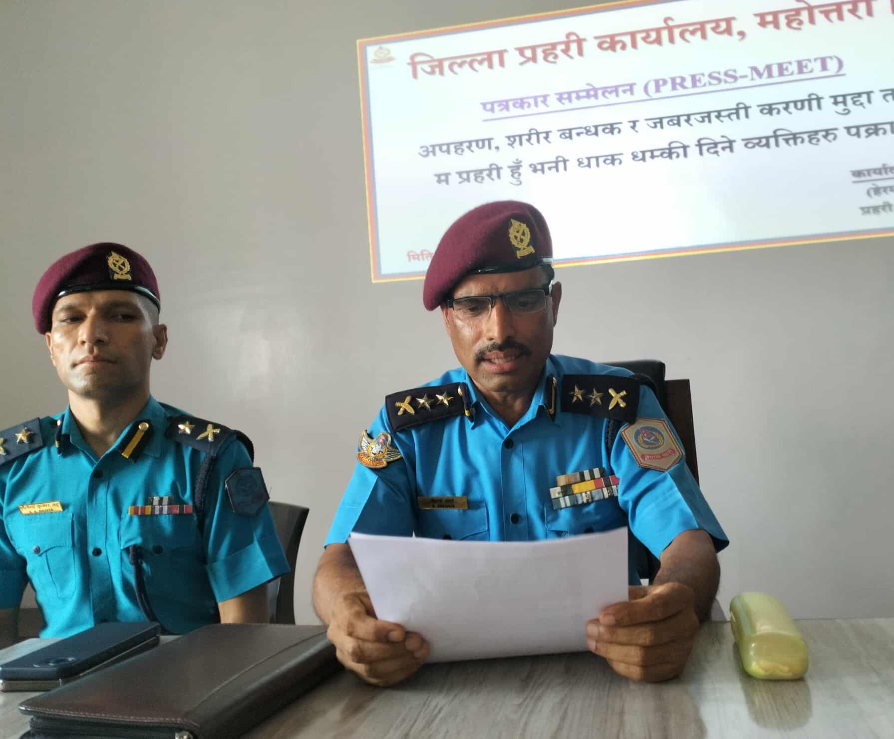 भारतमा लुकिछिपी बस्दै आएका उनीहरु आफन्तलाई भेट गर्न भारतीय सिमा क्षेत्र महोत्तरीको जलेश्वर नगरपालिका वडा नं.१२ नैनही गाँउ आएको भन्ने गोप्य सूचनाको आधारमा खटिएको जिल्ला प्रहरी कार्यालय महोत्तरीका प्रहरी टोलीले उनीहरु दुवैजनालाई शुक्रवार पक्राउ गरेको जिल्ला प्रहरी कार्यालय महोत्तरीका प्रमुख प्रहरी उपरीक्षक हेरम्ब शर्माले जानकारी दिए ।
