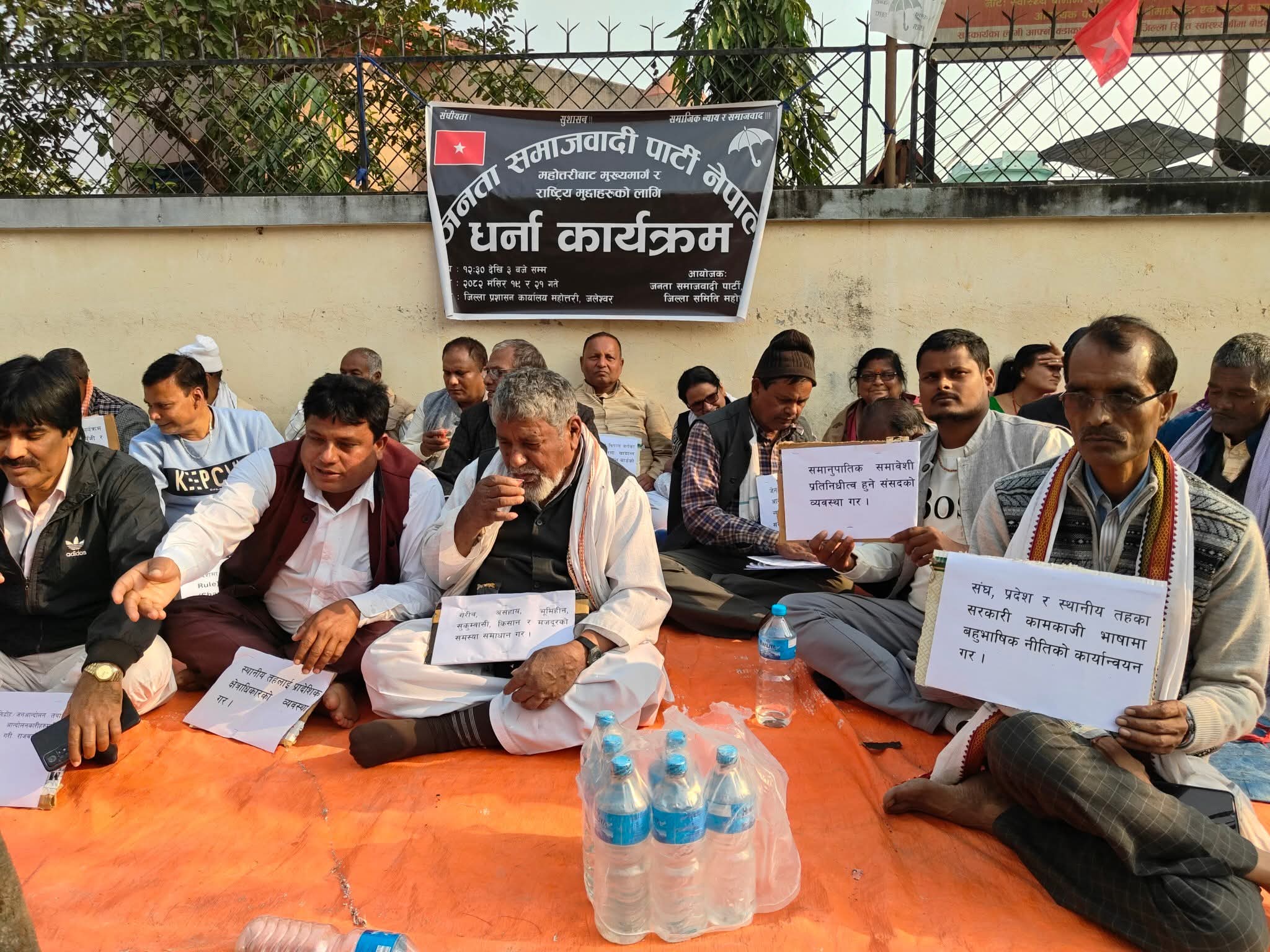 जलेश्वर , मंसिर १९ । जनता समाजवादी पार्टी (जसपा) नेपालले आज जिल्ला प्रशासन कार्यालय महाेत्तरीमा धर्ना दिएको छ ।