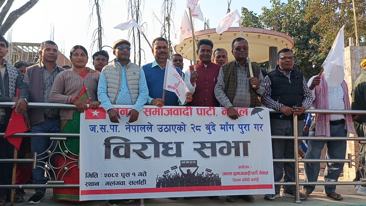 विरोध सभा जनता समाजवादी पार्टी, नेपाल जिल्ला समिति सर्लाहीको आयोजनामा सम्पन्न भएको हो।