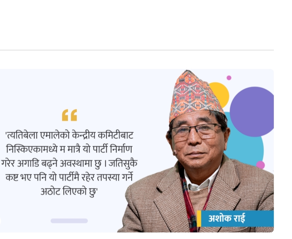 १३ वर्ष पहिले एमालेबाट बाहिरिएका मध्ये आफू मात्र जसपामा रहेको राई आफै पनि स्विकार छन् ।