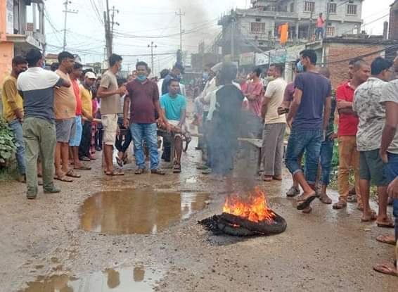 आइतबार विहानदेखि जनकपुरधाम–युदकोहा सडकखण्ड अन्तर्गत जनकपुरधाम १ स्थित पुलचोकमा स्थानीय युवाहरुले सडक अवरुद्ध गरेका हुन् । स्थानीयले टायर बालेर र बाँस सडक अवरुद्ध गरेका छन् ।