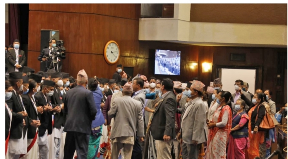 २३ भदौ, काठमाडौं । प्रमुख विपक्षी नेकपा एमालेले प्रतिनिधिसभामा नाराबाजी गरेको छ । आफूले कारबाही गरेका सांसदलाई सभामुखले समयमै पदमुक्त नगरेको भन्दै प्रश्न उठाएको एमालेका सांसदहरुले नाराबाजी गरेका हुन ।