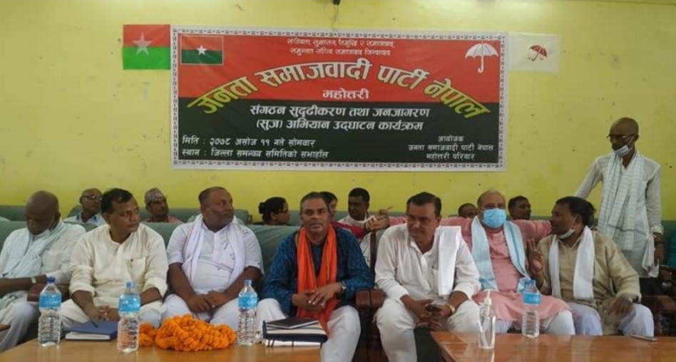 जसपाले साेमबार महाेतरीकाे सदरमुकाम जलेश्वरमा गरेको जिल्ला स्तरिय संगठन सुदृढीकरण तथा जनजागरण ( सुज)अभियान उदघाटन कार्यक्रमलाई सम्बोधन गर्दै यादवले दुई पटक संसद विघटन गरेर ओलीले एकै व्यक्तिलाई दुईपटक मृत्युदण्डको सजाय दिएको टिप्पणी गरे । र त्यसमा ठाकुर एण्ड दि कम्पनिका सेयर सदस्यहरुले पार्टीकाे बिपरित सहयाेग गर्न गएका छन । जनता समाजवादी पार्टी न फुटेकाे छ न टुटेको केही घुमन्तेहरु घुमन गएकाे भन्नेका छन ।