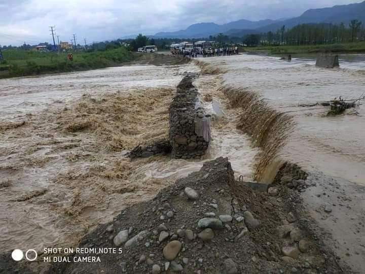 अविरल वर्षाका कारण आएको बाढीले डाइभर्सन बगाउँदा पूर्व-पश्चिम राजमार्ग अवरुद्ध भएको छ।
