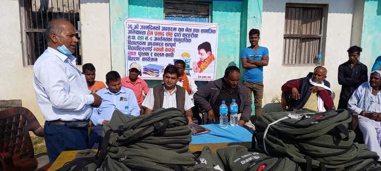 युवा नेता हेम प्रसाद साहद्वारा २७५ विद्यार्थी लाई स्कुलब्याग बितरण
