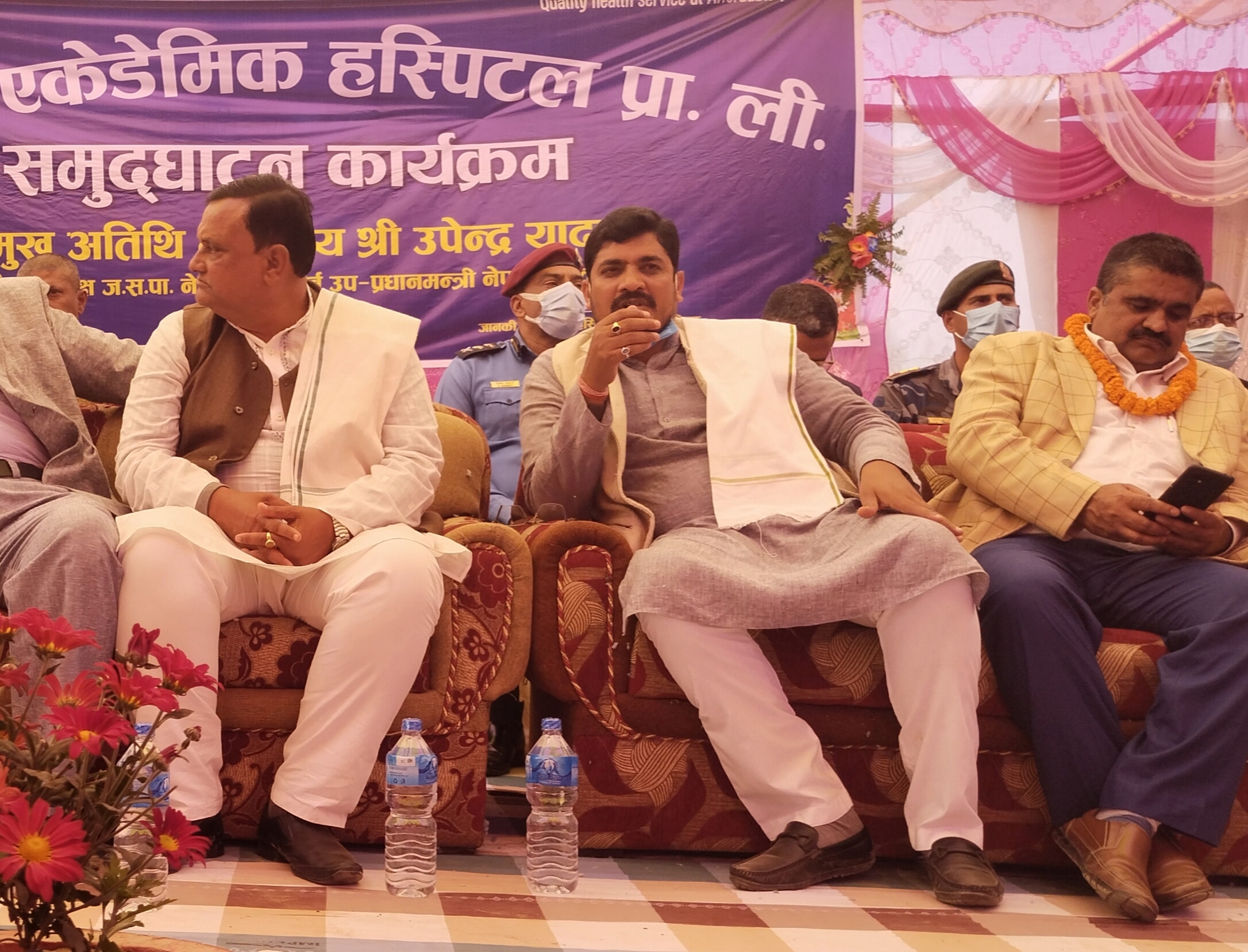 ५०लाखकाे लागतमा पूर्व स्वास्थ्य राज्यमन्त्री एवम महाेतरी क्षेत्र नम्बर ४का सांसद डा सुरेन्द्र कुमार यादवले संचालन गर्न लागेकाे हस्पिटलकाे समुदघाटन कार्यक्रममा जसपा नेपाल महाेतरी क्षेत्र नम्बर ४काेे अध्यक्ष एव प्रदेश २काे पूर्व कानुन राज्य मन्त्री सराेज सिंह कुश्वाहाले उत्पिडित वर्गको सम्मानको लागी जसपा प्रतिवद्ध रहेको बताउनु भयो । राष्ट्रिय संरचनामा सबै भन्दा समावेशी पार्टीको रुपमा रहेको जनता समाजवादी पार्टी उत्पिडित वर्गको भरोसाको एकमात्र केन्द्र रहेको दावी गर्नु भयो ।