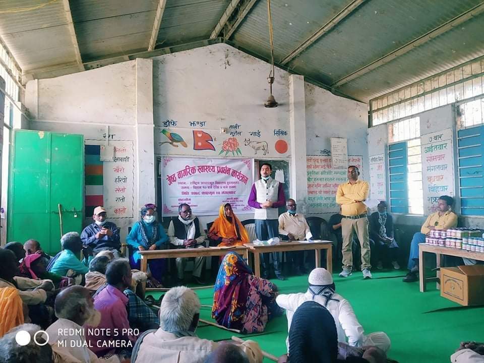कपिलवस्तु जिल्लाको कृष्णनगर नगरपालिका वडा नं १२ मा रहेको श्री राष्ट्रीय आधारभूत विद्यालयमा जेष्ठ नागरिक स्वास्थ्य प्रवर्धन कार्यक्रम अन्तर्गत नागरिक आरोग्य सेवा केन्द्र कृष्णनगर कपिलवस्तु आयुर्वेद स्वास्थ्य केन्द्रको आयोजना तथा कृष्णनगर नगरपालिका वडा नं १२ को सहयोगमा ७० बर्ष भन्दा माथीका जेष्ठ नागरिकको चेकजांच कार्यक्रम सम्पन्न भएको छl