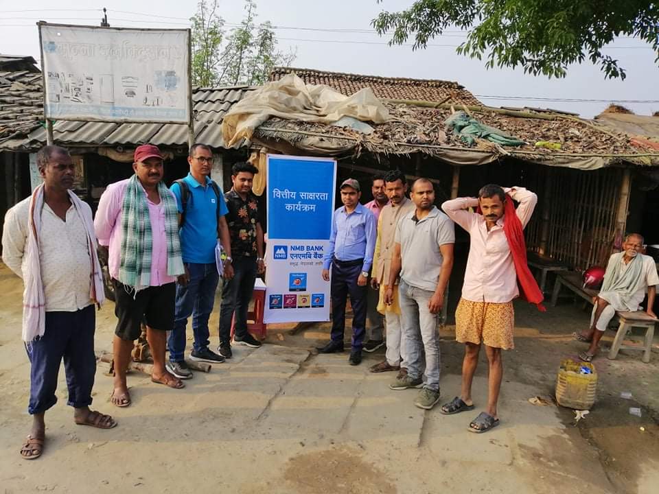 एन एम बि बैंकले वितिय साक्षरता अभियान कार्यक्रम गरिएकाे छ । साेनमा गाउँपालिका वडा नम्बर १मा रहेकाे उक्त बैकंककाे शाखाले गाउँपालिकाकै वडा नम्बर ३रघुनाथपुर बजारमा कार्यक्रम गरेकाे शाखा प्रमुख बिजय कुमार यादवले जनाएकाे छ । बैक तथा वितिय संस्थाकाे सेवा सुविधाबाट बन्चित रहेका गरिब ,असहाय ,अशिक्षित ,बिपन्न वर्ग,दलित समुदायहरुलाइ लक्षितगरि वितिय साक्षरता तथा डिजिटल सेवा सम्बन्धि जानकारीमुलक कार्यक्रम गरिएकाे छ ।उक्त कार्यक्रममा वडा नम्बर ३का सयकडाै स्थानिय गरिब वर्गका मानिसहरुलगायत बैंकका शाखा प्रमुख बिजय कुमार यादव ,कर्मचरी रामइश्वर सिंह,अमित कुमार साह,संजय सहनि अाशिक अलि,र गार्ड प्रमाेद कुमार यादवले कार्यक्रम सम्पन्न गरेका छन । अगामि दिनमा समेत यस्तै कार्यक्रम दलित गरिब तथा वितिय संस्थाबाट टाढा रहेका समुदायहरुकालागि यस्तै कार्यक्रमहरु गरिने शाखा प्रमुख बिजय यादवले बताएका छन