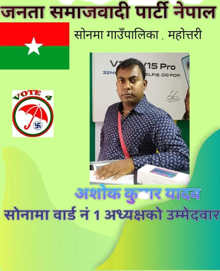 महाेतरीकाे साेनमा गाउँपालिमा वडा नम्बर १ मा अशाेक कुमार यादव ले लिड कायमै गर्दै, सूर्य र लाउड स्पिकर पछिपछि