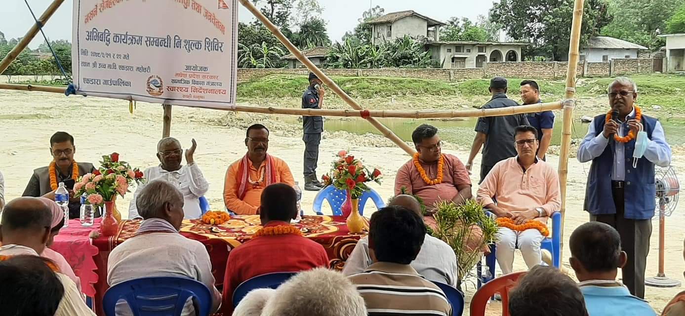 एकडरा गाउँपालिकाका अध्यक्ष दीप नारायण मण्डलको अध्यक्षतामा भएको कार्यक्रममा गाउँपालिकाका उपाध्यक्ष महजवि खातुन, प्रादेशिक जनस्वास्थ्य प्रयोगशालाका प्रमुख डा. श्रवण कुमार मिश्र, वडा नंं २ का वडाध्यक्ष सखीचन्द यादव सहितका वक्ताहरूले शिविर निक्कै महत्त्वपूणर् भएको बताउनुभयो ।