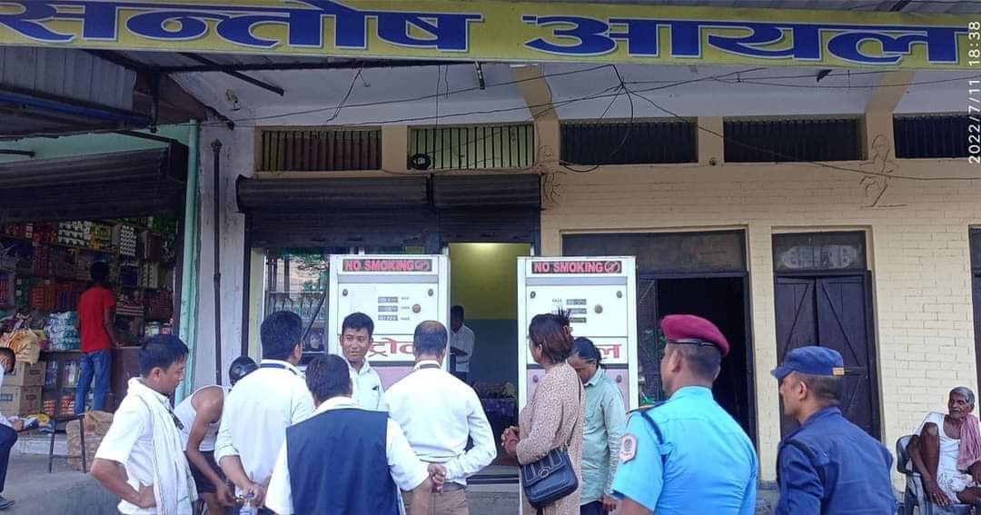 संयुक्त बजार अनुगमन समितिले परासी, पाल्हिनन्दन र सरावलका गरी ६ वटा पेट्रोल पम्पमा अनुगमन गरेकोमा इन्धनको परिमाण नै कम गरेर बेच्ने गरेको पाइएपछि रामग्राम ६ स्थित सन्तोष आयल स्टोर्समा सिलबन्दी गरिएको संयुक्त बजार अनुगमन समितिका निरीक्षक अधिकृत एवं सहायक प्रमुख जिल्ला अधिकारी रामचन्द्र अर्यालले जानकारी दिनुभयो ।