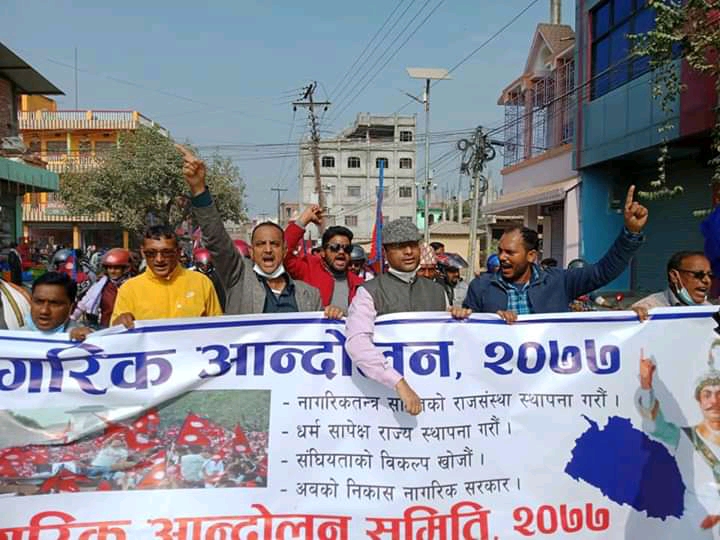 राजसंस्था सहित हिन्दु राज्य पुनर्स्थापनाका लागि देशव्यापी रूपमा शृङ्खलाबद्ध सडक संघर्षका कार्यक्रम हुन थालेको छ।